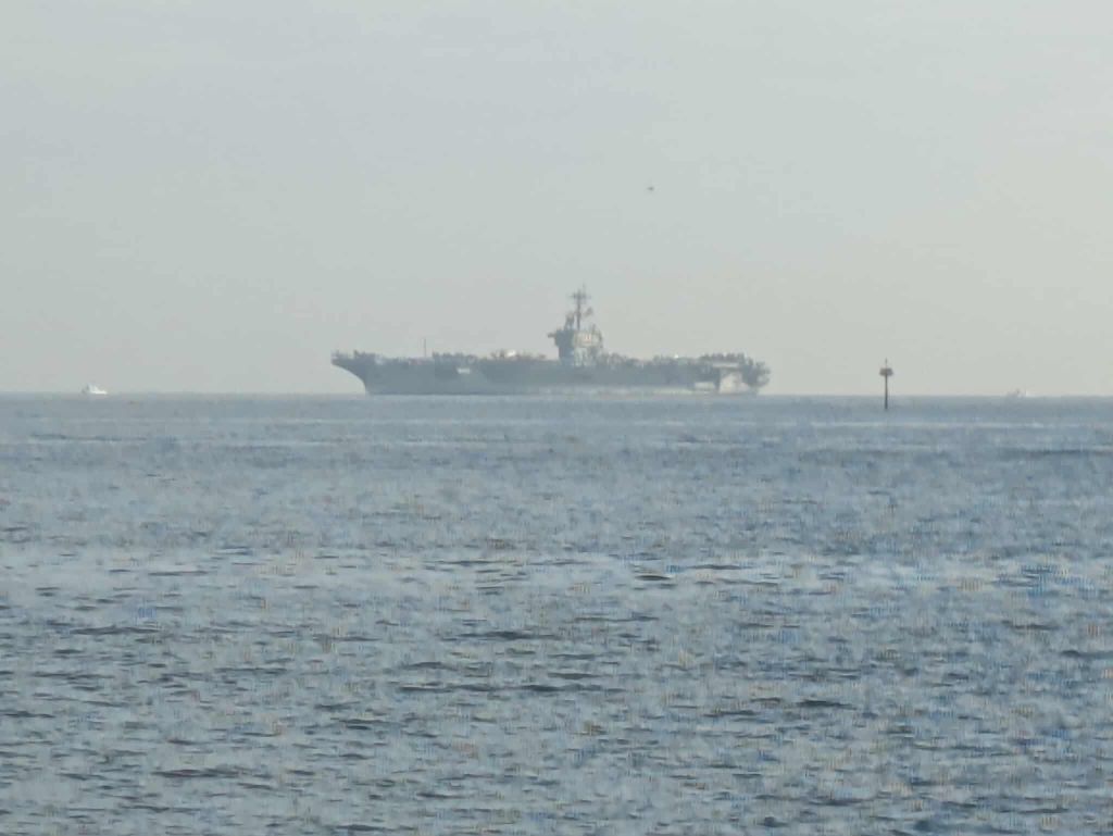 甲板にはF/A-18E、F-35C、E-2D等が搭載されているのが見えています。