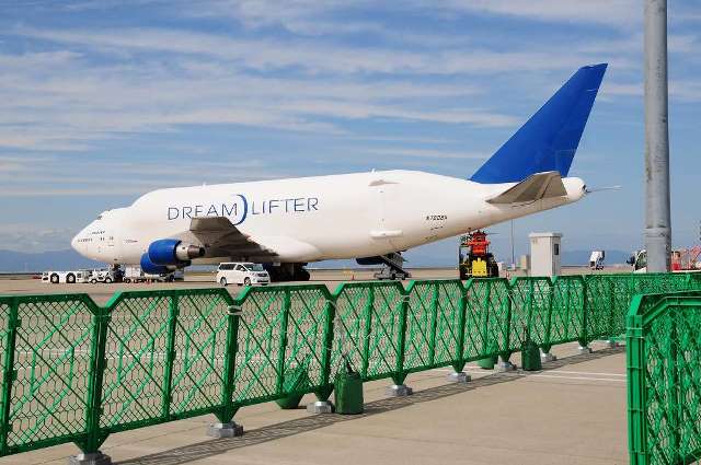 ドリームリフターはN780BAとN747BCの2機がおり、N747BCは貨物の積載と通関が終わって 午前10時40分頃アメリカに向けて出発しました。残るN780BAはAM10:50頃に展示場にトーイングされて来て ここでボデー積載のデモを 行いました。2007年5月14日の初出荷のセレモニーのときとは違い 、そばでみるドリームリフターの大きさには改めて感動。