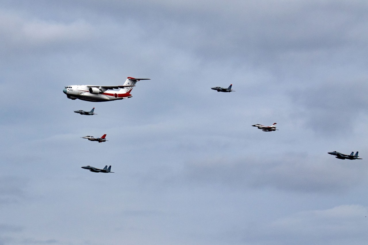 11月12日に開催された 航空自衛隊 岐阜基地航空祭の写真を頂きました。 参加航空機紹介と 編隊飛行、機動飛行を中心に紹介します。 航空自衛隊 岐阜基地 公式ホームページ リンク 撮影2023/11/12 F-15J 42-8829 鈴木一弘 撮影2023/11/12 F-15J 32-8942(手前) 42-8849(奥側) 鈴木一弘 撮影2023/11/12 F-2A 63-8501(右下) F-2B 63-8102(左上) 鈴木一弘 撮影2023/11/12 F-2A 63-8501 鈴木一弘 撮影2023/11/12 T-4 65-5404(上側) 96-5618(下側) 鈴木一弘 撮影2023/11/12 T-4 65-5404 鈴木一弘 撮影2023/11/12 C-2 08-1201 鈴木一弘 撮影2023/11/12 Boeing 767-2FK/ER 07-3604 鈴木一弘 撮影2023/11/12 Raytheon U-125A 62-3004 鈴木一弘 撮影2023/11/12 UH-60J 88-4614 鈴木一弘 撮影2023/11/12 エクストラ式EA-300L 型 JA14WP 鈴木一弘 ウィスキーパパ 異機種編隊飛行撮影2023/11/12 T-7 76-5946、 F-2B、F-2A、F-15 鈴木一弘 ブルーインパルス曲技飛行 1番機 26-5690 2番機 06-5787 3番機 36-5697 4番機 26-5686 5番機 36-5694 6番機 16-5666 撮影2023/11/12 鈴木一弘 11月7日予行訓練風景 予行訓練日の天候が良く写真の色合いが良いので一部紹介します撮影2023/11/07 鈴木一弘 後方は川崎重工業