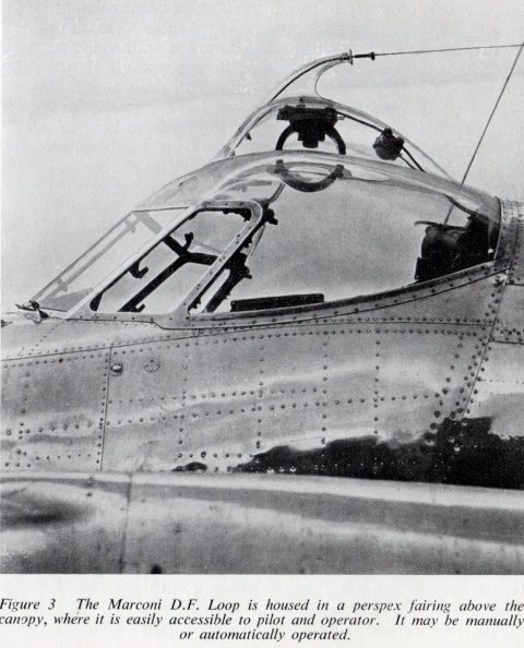 ループアンテナを格納し、手でまわせるようにコックピットの上に設計されたのでした。垂直尾翼先端に向かって張る短波アンテナのために角を取り付けています。