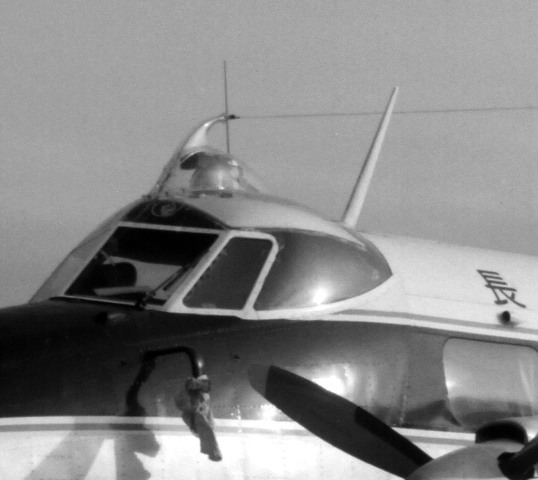 デハビランドDH104ダブとDH114ヘロンのコックピットの上の透明ドームの中身は何でしょう? ループアンテナを格納し、手でまわせるようにコックピットの上に設計されたのでした。垂直尾翼先端に向かって張る短波アンテナのために角を取り付けています。 1947年秋発行 DE HAVILLAND DOVE HANDBOOKより