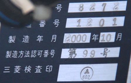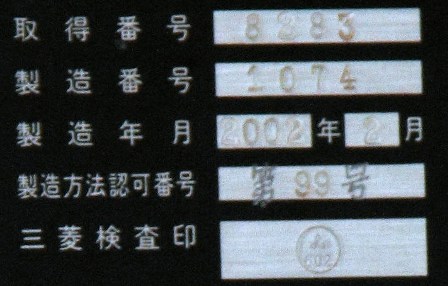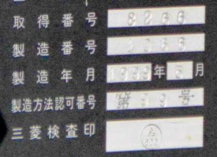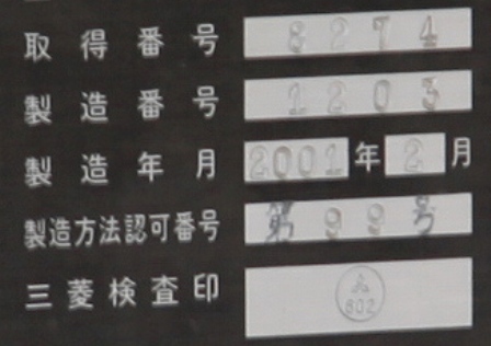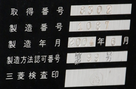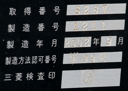 銘板の全体写真 艦載型取得番号8301 製造番号1086の場合