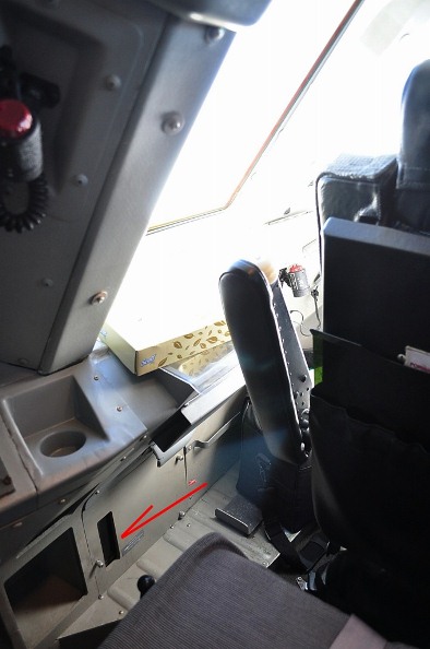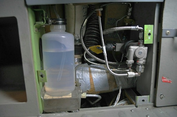 ウッシャー液は操縦室内左側、機長席後方の壁内にあり、覗き窓から液量を確認出来ます。