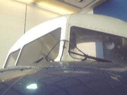 この水をパイプで胴体下部のドレンホール付近まで引いて機外に放出ていました。きれいに予定通り雨水が流れてくれればよいのですが、穴が詰まったり、で水が樋からあふれることがたまにありました。