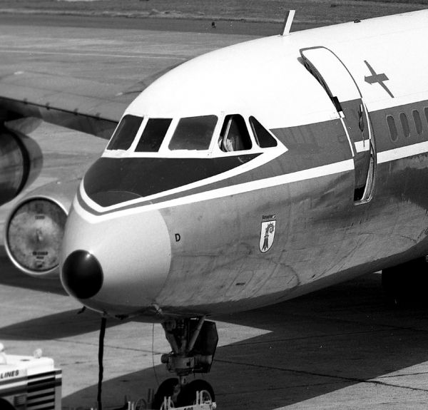 確かにDC-8にはワイパーは見当たりませんね、面白い話でした。機首アップの映像が有りましたので送ります。69年頃の撮影と思いますがDC-8-32