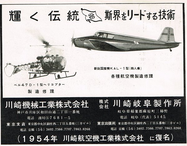 ・ 川崎機械工業から川崎航空機工業への過渡期の広告 1953年各雑誌