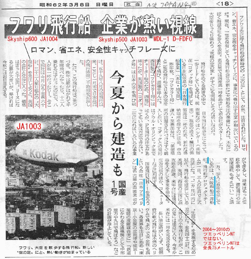 1987年当時の日本企業の飛行船熱を伝える記事 (AIR