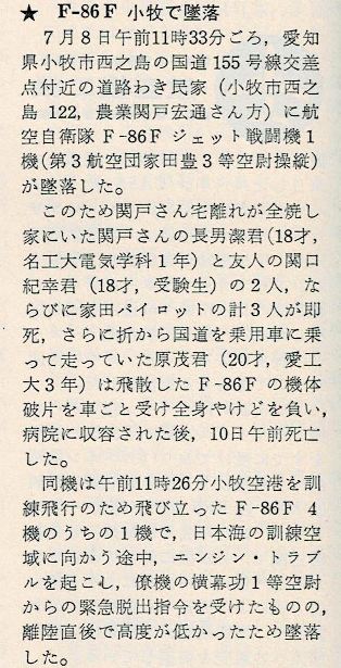 小牧基地離陸直後に墜落 民家と3人の青年が巻き添え |