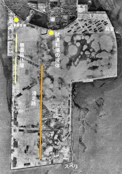 @の掩体は、宮野寛治証言による飛燕等の試運転用又は保管用の掩体であったこと
