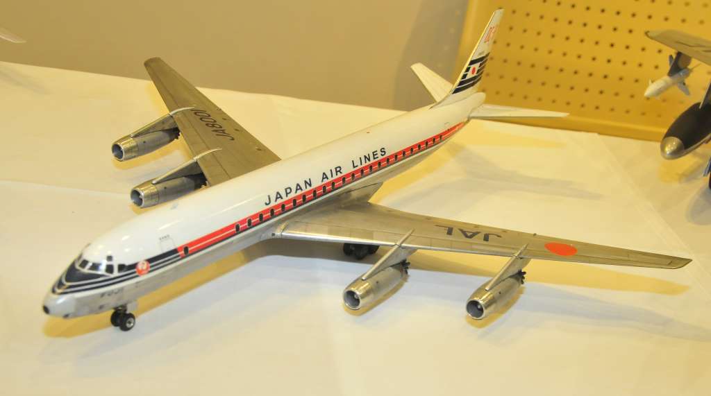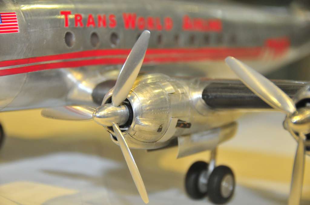 最近製作中のDC-7Cは8機目で、今回製作途中の状態で展示してくれていました。 まだアルミを張り付けている途中段階でこのあとアルミ表面の磨きや窓の磨き作業などを行った後に塗装作業が行われるそうです。