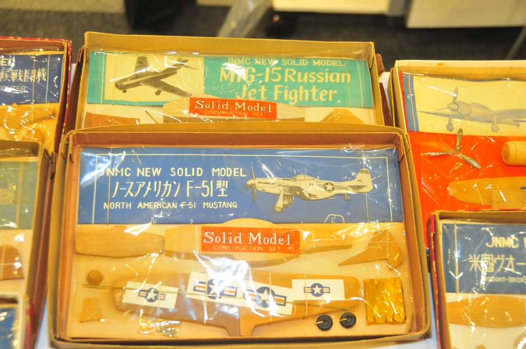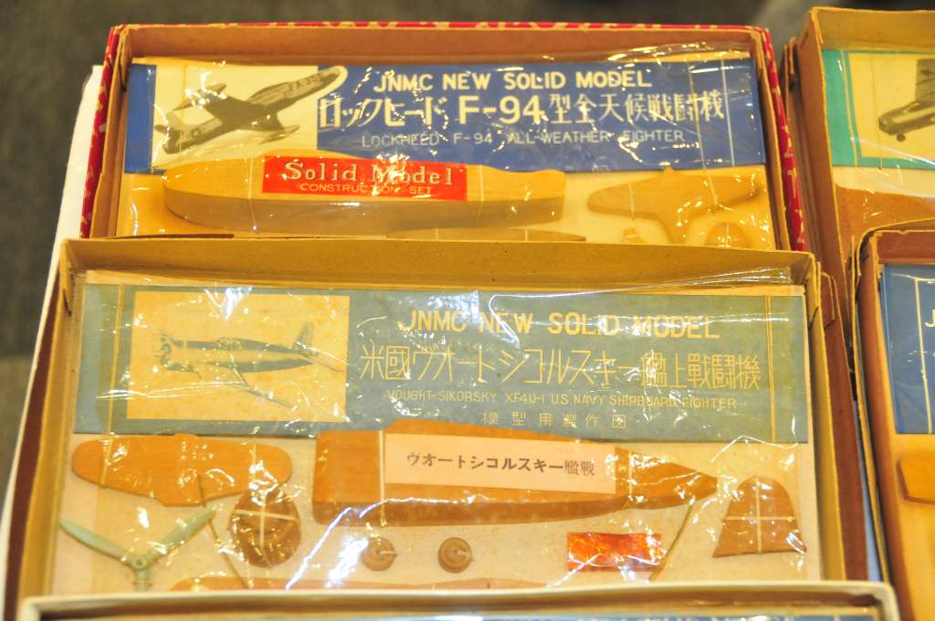プラモデルが出回る前のソリッドモデルキットや母材となる朴木が展示されていました。
