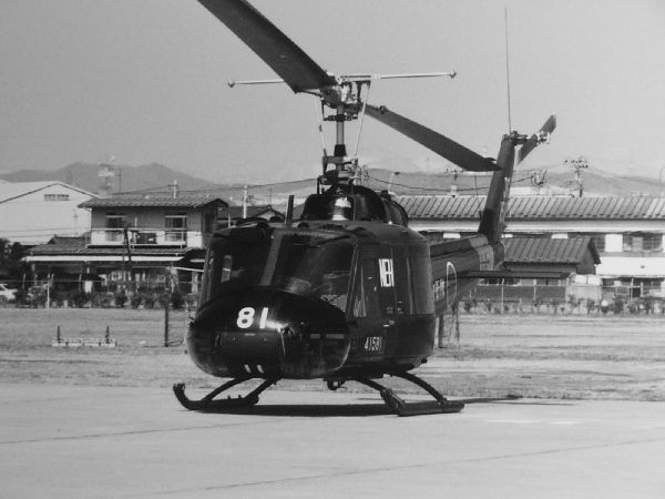 兵庫県小野市 青野原駐屯地でのUH-1B 41581 (機体に白色のナンバーが見られない)