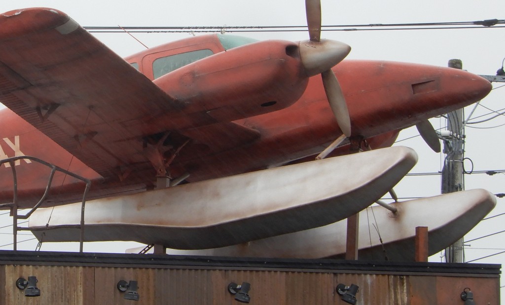当機は通常の陸上機ですが 展示で雰囲気を出すために水上機のように加工されています。