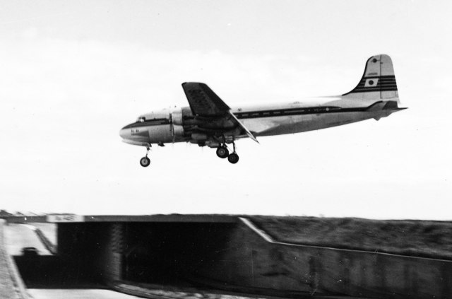 | B滑走路エンドから写したダグラスDC-4 JA6006 阿蘇号 |