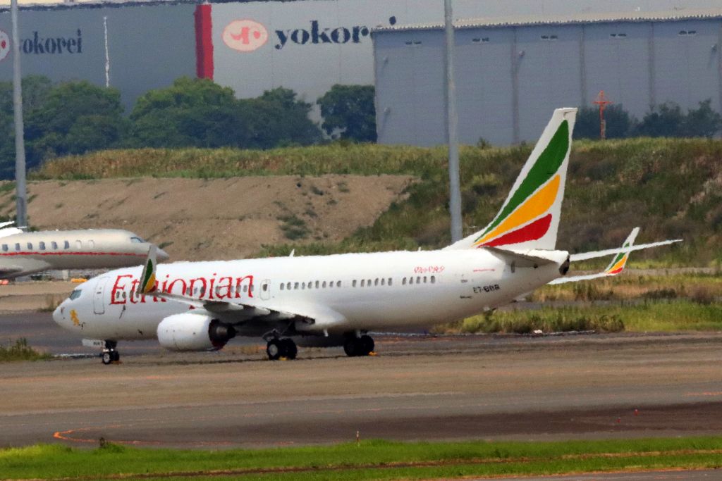 ※エチオピア代表はエチオピア航空定期便で成田に来日した模様 エチオピア航空 B737-8JM BBJ2 (ET−BBR) 撮影2025/8/22 東京モノレール羽田空港第3ターミナル〜天空橋間 車窓から ハロースクエア ※陽炎でモヤモヤです