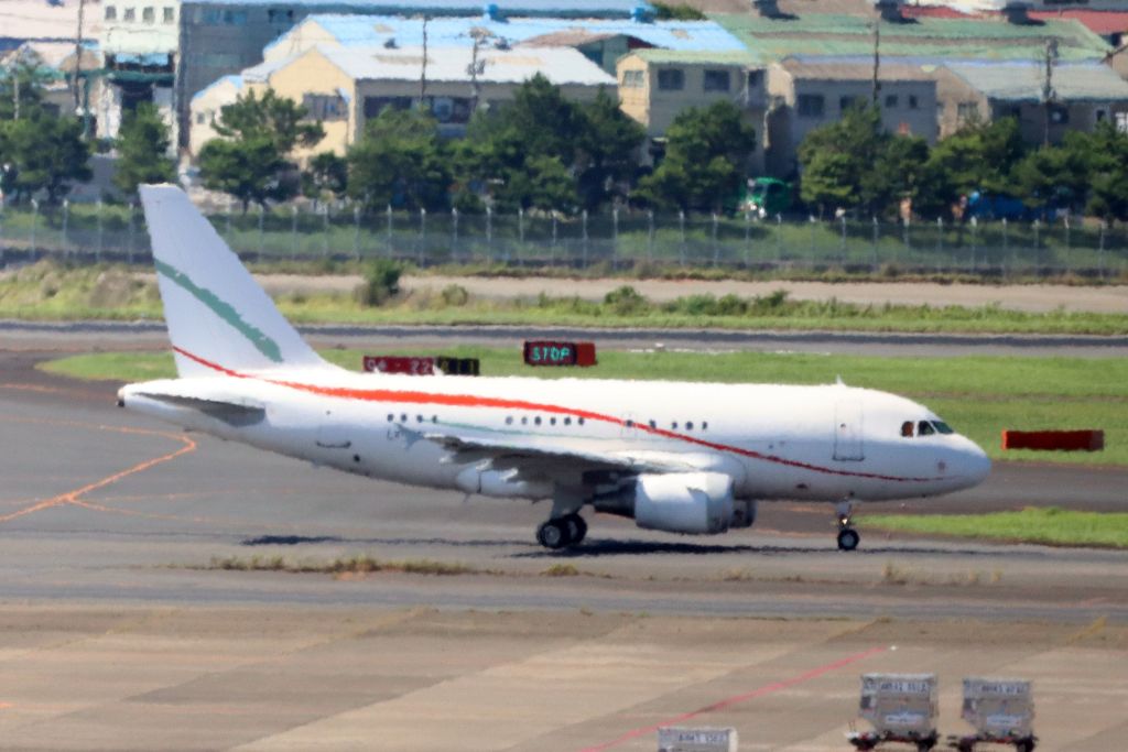 グローバル ジェット ルクセンブルグ A318-112 CJ (LX-LIT) 撮影2025/8/19 東京国際空港T1 デッキ ハロースクエア ※陽炎でモヤモヤです