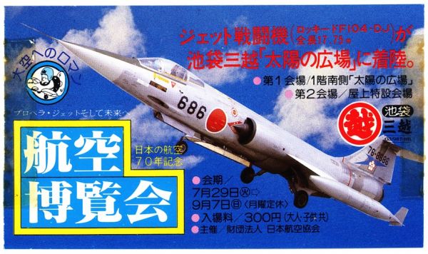 山本晋介さんが、思い出して高校時代の日記帳を出してみたところ航空博覧会のチケットが貼り付けてありました。それで、この博覧会が、日本の航空70周年を記念する日本航空協会の大きな事業(7月29日から9月7日までの38日間)であったこと、入場料が大人も子供も300円であったことなどがわかりました。
