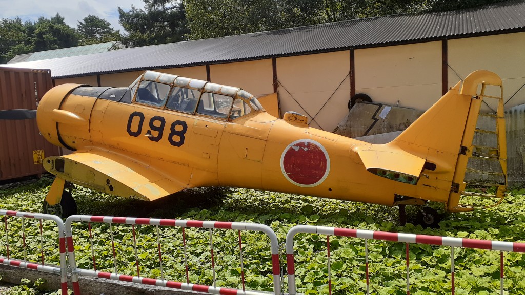 ロッキードF-104DJ 26-5007 (自動車博物館玄関上屋) 経歴は参照 ノースアメリカンF-86F-40 02-7970 経歴は航空自衛隊F-86研究参照 カーチスC-46D 61-1127 経歴は八王子市参照 ロッキードT-33A 51-5639 その後ろの胴体はグラマンS2F-1トラッカー × ノースアメリカンT-6F 52-0010