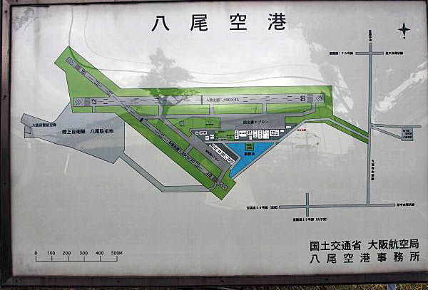 八尾空港は、広さ約80万uの運輸省が管理する第2種空港であり、1490m×45 mと1200 m×30 mの2本の滑走路を持ち、小型航空機の運行会社や陸上自衛隊八尾駐屯地などが使用しています。 1490mの滑走路があるのでB-737ぐらいの航空機が発着できるのですが、周りに住宅街があるためか大型の飛行機の発着は無く、ジェット機は小型のビジネスジェットがたまに発着するくらいです。 八尾空港入口にある石碑 (現在の写真は2009/09/28撮影 以下同じ) 八尾空港入口にある看板 2009/09/28現在 格納庫地区入口にある看板 昔は現在の空港入口よりまだ東側のこの空地部分に駐機場や格納庫があり、写真の左側にある八尾南駅から撮影できました。 旧駐機場を撮影した昔の写真 こういう写真が撮れました。 JA9146 Aerospatiale SA316B 大阪市消防局 1982年2月25日撮影 現在大阪市の元生野防災センターA5505にあります。 東亜国内航空と書かれた大きな格納庫がありました JA5150 Beechcraft H-18 共立航空 1982年2月25日撮影 現在崇城大学A8506の教材となっています。(7697の写真にある同じ建物が写っていると思います) JA5070 Beechcraft D-50? 日本産業航空 1982年2月25日撮影 現在兵庫県南あわじ市にあるエアロスペースA5613に展示。 JA9152 Bell 206B 朝日ヘリコプター 1982年3月22日撮影 1999年7月5日インペリアル航空所属時に千葉県市原市に墜落・大破。 ここ八尾空港入口から一番奥にある管制塔や駐機場までは約1.1キロありますので、徒歩で来られると苦労します。 ここが一番奥にある管制塔です この付近からはヘリコプターの発着が撮影できます。 管制塔横にある八尾空港総合ビル 前はここにレストランがあったのですが営業をやめてしまい、撮影に来る人や航空機で飛来する人は食料を買ってこなければ飢え死にしますよ(笑) 管制塔から少し西に戻ったところに駐機場があり撮影ができますが、フェンスがあるので脚立があったほうがいいでしょう。 駐機場側から滑走路をはさんで反対側には滑走路と並行して道路があり、航空機の離発着の撮影ができます。(当日は東側からの離着陸でしたが、ほとんど西側からの離着陸のほうが多く、その付近も道路があり同じように近くで離着陸を撮影できます。) JA6026 Fuji-Bell 204B-2 残り少ないFuji-Bell 204B-2の内の1機 東京ヘリポートには3階建て格納庫がありましたが、八尾空港にも2階建て格納庫がありました。 どうやって上に運ぶのでしょうかね〜? 大きなエレベーターがあるのかな。