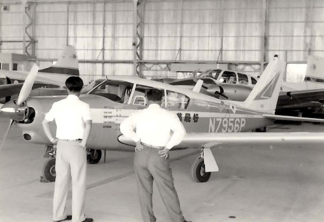 1964/07 日米親善飛行のヘンリー 大江氏のパイパーPA28が格納庫に逗留