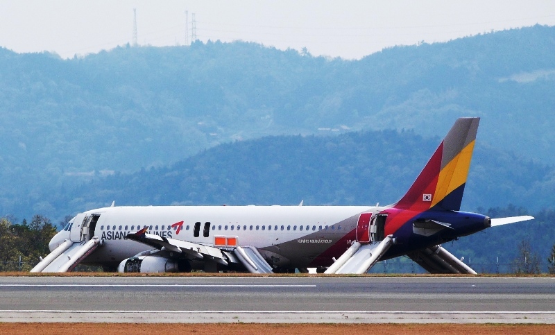 14日午後8時5分ごろ、アシアナ航空のOZ162便、仁川発広島着のA320-232 HL7762が広島空港滑走路に28に低空で進入し、左エンジンと翼、左水平尾翼がローカライザー無線標識に接触して、双方を破壊し、滑走路中ほどから逆向きに回転して逸脱し、飛行場南側に停止しました。幸いに火災が発生せず、乗員乗客82人はシューターで脱出し、人的被害は軽症者23人で済みました。