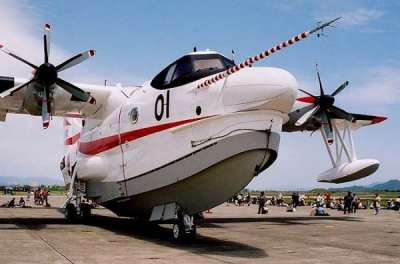 初展示のUS-1A改 撮影興野博士 低空で急接近し観覧席のVIPテントを吹き飛ばしたMH-53 撮影にがうり |