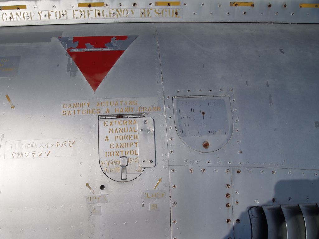 非常用キャノピー解放レバー部のカバーが開けられようとしています。